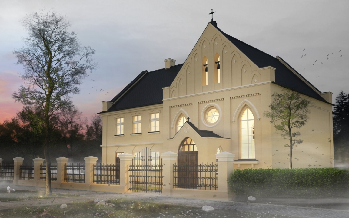 Entwurf: Renovierung der außenwand von der evangelisch-augsburger kapelle mit kirchengemeindeschule und mit der wohnung des kantors